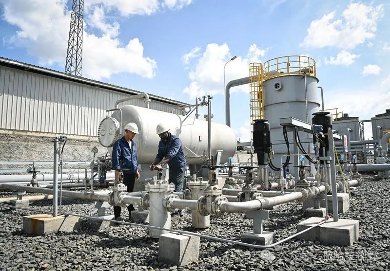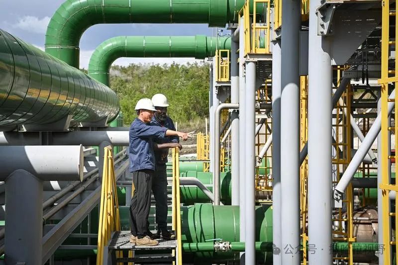 9月9日,在位于肯尼亞納庫(kù)魯郡的索西安地?zé)犭娬?,方文軍與當(dāng)?shù)毓び蜒惨暀z查管道。